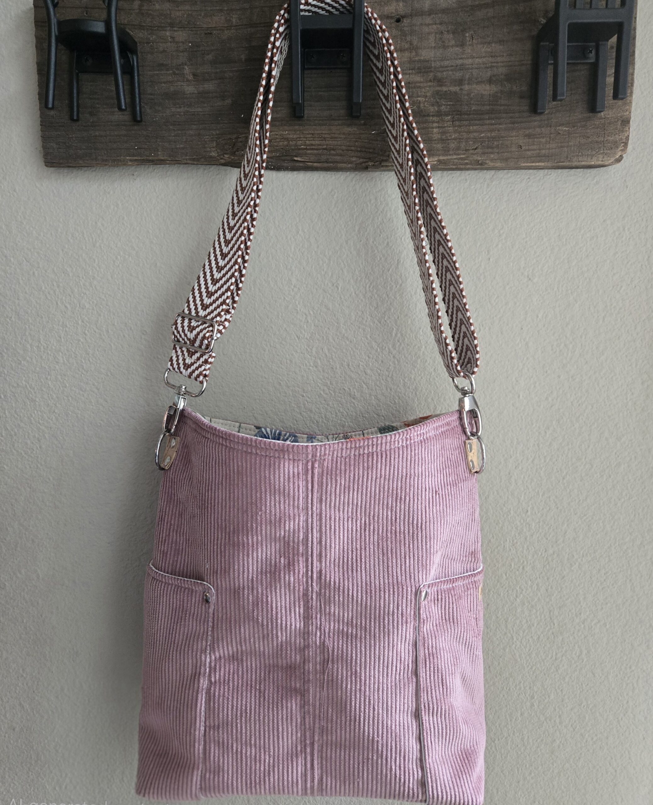 Lovely soft corduroy holds a complementing canvas linen lining.